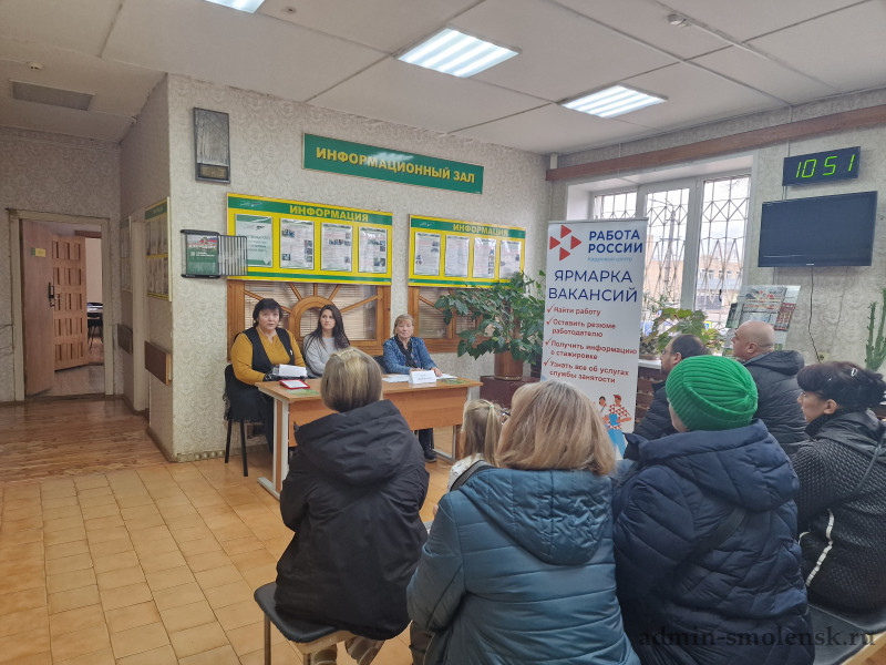 - 21 октября 2025 года в помещении Отдела СОГКУ «Центр занятости населения Починковского района» в Ельнинском районе прошла «Ярмарка вакансий рабочих мест» с участием ООО «Смоленская универсальная база Облпотребсоюза» и МУП «Водоканал»