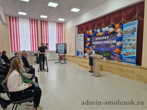 по адресу: г. Ельня, ул. Ленина, д. 46 А. с 10 часов утра проходил региональный этап Всероссийской ярмарки трудоустройства "Работа России. Время возможностей" и Фестиваля профессий. Это федеральный проект, объединяющий соискателей и работодателей по всей стране.