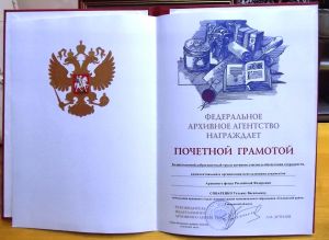 29-30 мая 2014 года отдел по работе с архивами Департамента Смоленской области по культуре и туризму провёл торжественные мероприятия по празднованию 95-летия архивной службы Смоленской области. По итогам работы, за многолетний добросовестный труд и активное участие в обеспечении сохранности, комплектовании и организации использования документов Архивного фонда Российской Федерации Почетной грамотой Федерального Архивного агентства награждена начальник архивного отдела Администрации муниципального образования «Ельнинский район» Смоленской области СОВАРЕНКО ТАТЬЯНА ВАСИЛЬЕВНА.