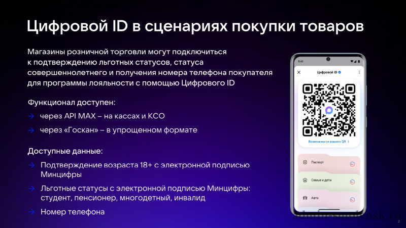Теперь вам больше не придется носить с собой многочисленные документы и карты. Достаточно предъявить QR-код вашего Цифрового ID, и система автоматически подтвердит ваш возраст, льготы и подключит вас к программам лояльности прямо на кассе.
