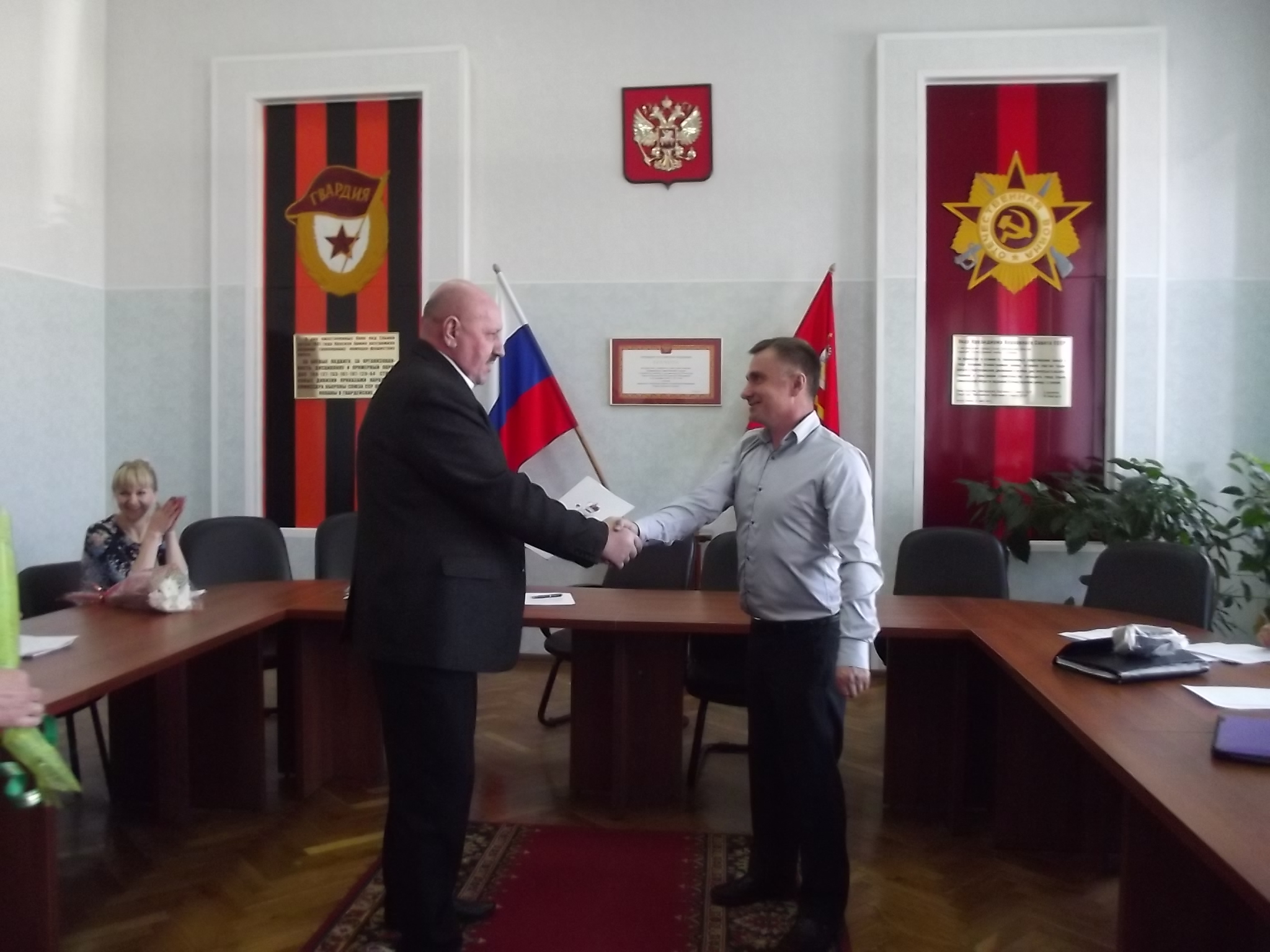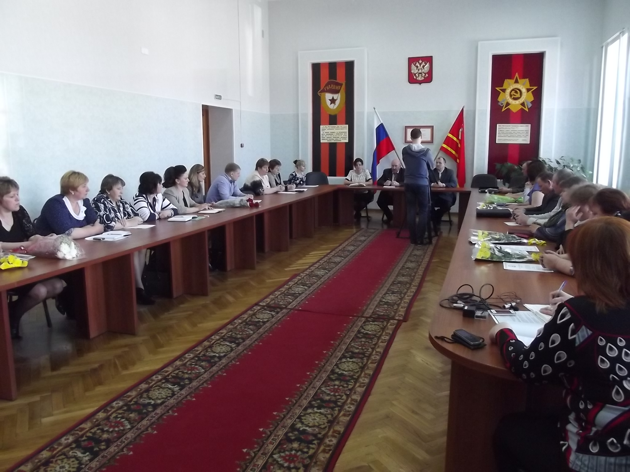 Прежде чем начать рабочее совещание, Глава МО «Ельнинский район» Смоленской области В.Е. Левченков и Глава Администрации МО «Ельнинский район» Смоленской области Н.Д. Мищенков поздравили всех собравшихся с Днём органов местного самоуправления, который был учрежден указом Президента Российской Федерации в 2012 году и отмечается 21 апреля. За большой личный вклад в развитие местного самоуправления Почетными грамотами и Благодарственными письмами Администрации муниципального образования «Ельнинский район» Смоленской области были отмечены сотрудники муниципальных образований городского и сельских поселений района: