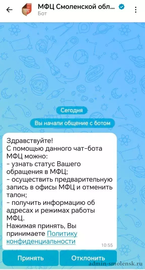 различные цифровые сервисы. Среди них — чат-бот МФЦ Смоленской области в